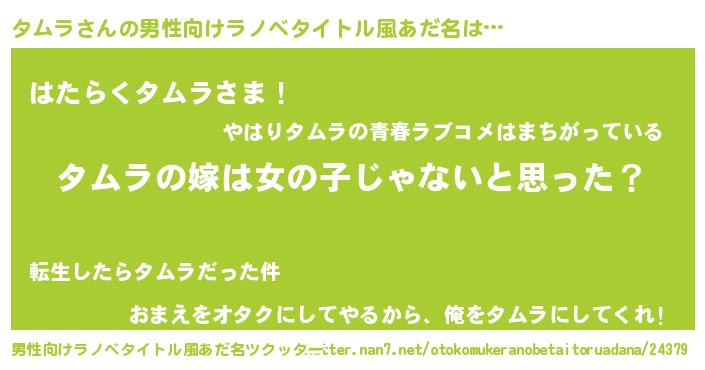 | 女子向けラノベタイトル風あだ名 | 『タムラ様がみてる』 |