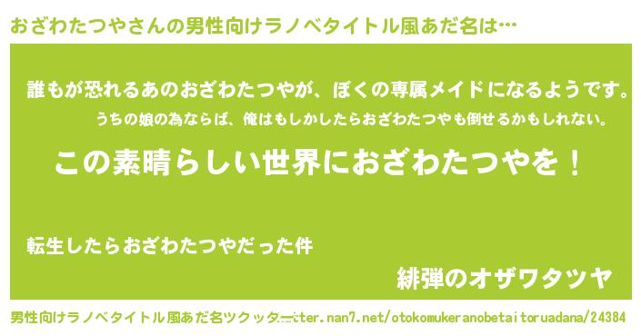 | 女子向けラノベタイトル風あだ名 | 『悪役おざわたつやに転生したようですが、知った事ではありません』 |