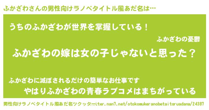 | 女子向けラノベタイトル風あだ名 | 『ふかざわ様がみてる』 |
