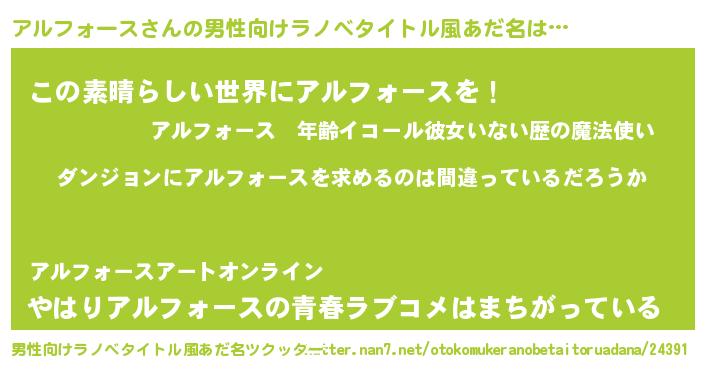 | 女子向けラノベタイトル風あだ名 | 『アルフォースは平凡を望む』 |