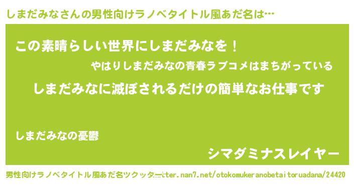 | 意味不明あだ名 | 『住所不定無職しまだみな(12歳)』 |