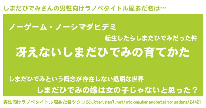 | ヘコむあだ名 | 『しまを』『しまだひでみ(笑)』 |