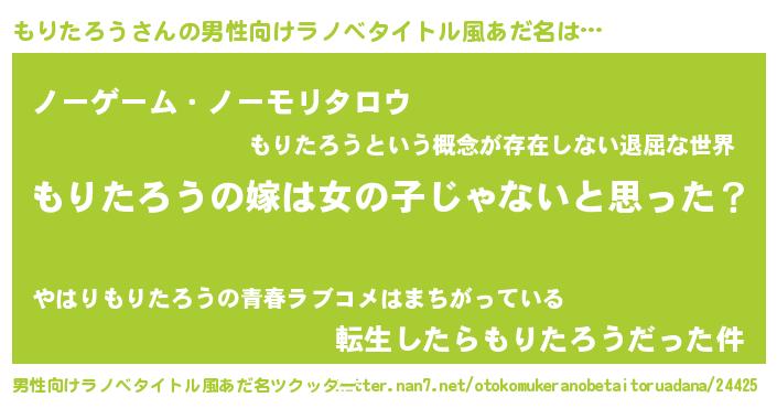 | 女子向けラノベタイトル風あだ名 | 『もりたろう様がみてる』 |