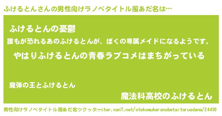 | 女子向けラノベタイトル風あだ名 | 『ふけるとんの雑貨屋さん』 |