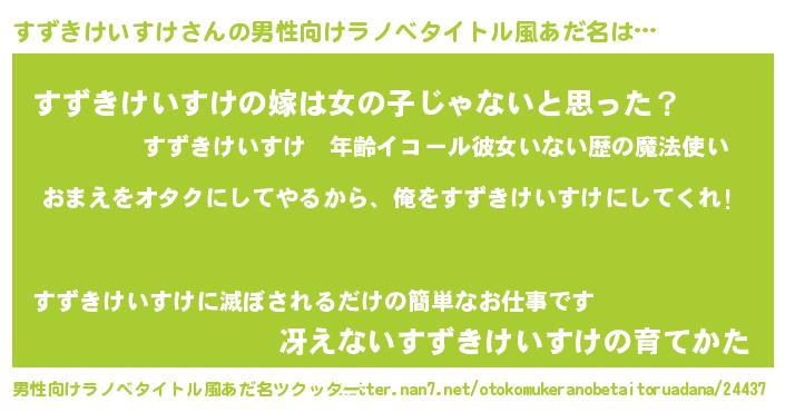 | 女子向けラノベタイトル風あだ名 | 『すずきけいすけ夫妻のなれそめ』 |