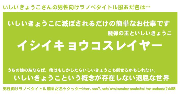 | 肩書あだ名 | 『いしいきょうこ少将』 |