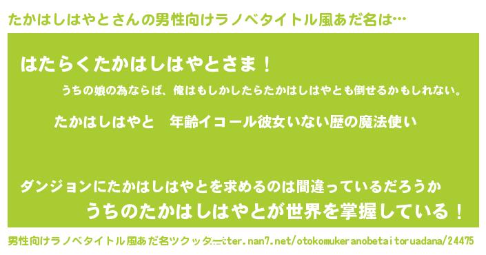 たかはしはやとさんの男性向けラノベタイトル風あだ名をツクッター!