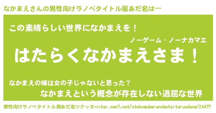| 胡散臭い通販商品みたいなあだ名 | 『ハリウッド女優が絶賛した100年もののヴィンテージワイン…その名も「なかまえ」』 |
