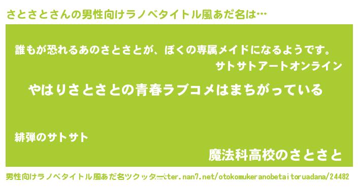 | 意味不明あだ名 | 『さとさとフォーエバー』『自称さとさと』 |
