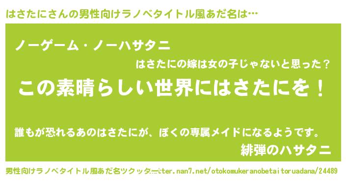 | 意味不明あだ名 | 『住所不定無職はさたに(12歳)』 |