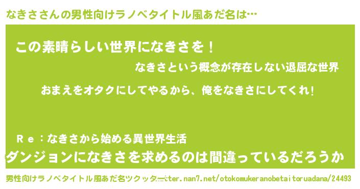 | 女子向けラノベタイトル風あだ名 | 『なきさ夫妻のなれそめ』『闇のなきさ』 |