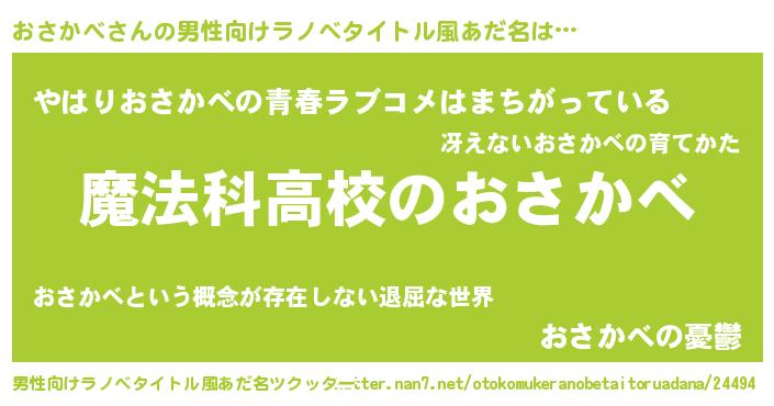 | 女子向けラノベタイトル風あだ名 | 『おさかべなんてお断りですっ。』 |