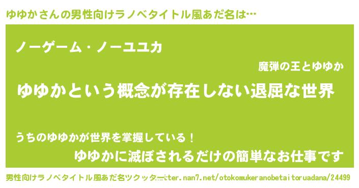 | 胡散臭い通販商品みたいなあだ名 | 『来世でも幸せになれる健康食品…その名も「ゆゆか」』 |