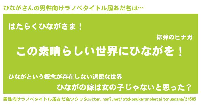 | 意味不明あだ名 | 『住所不定無職ひなが(40歳)』『自称ひなが』 |