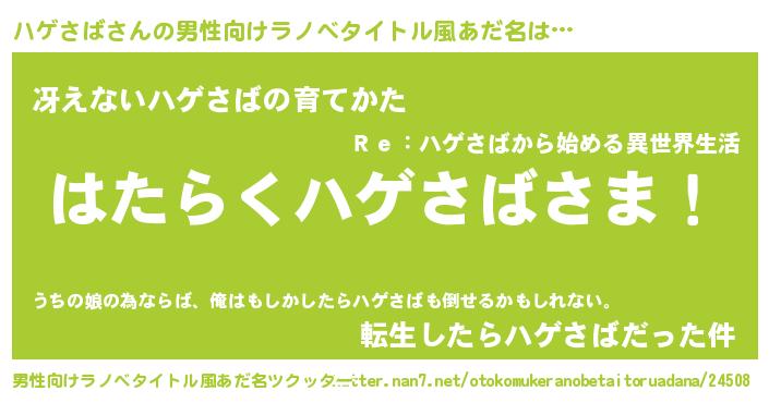 | ヒーロー風カッコイイあだ名 | 『超時空戦士ハゲサバ』『幻影騎士ハゲ』 |