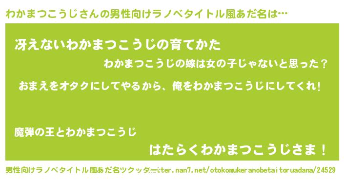 | 女子向けラノベタイトル風あだ名 | 『わかまつこうじ夫妻のなれそめ』 |