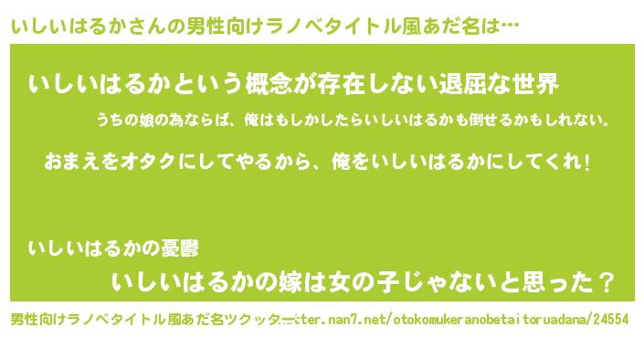 | 女子向けラノベタイトル風あだ名 | 『いしいはるか夫妻のなれそめ』 |