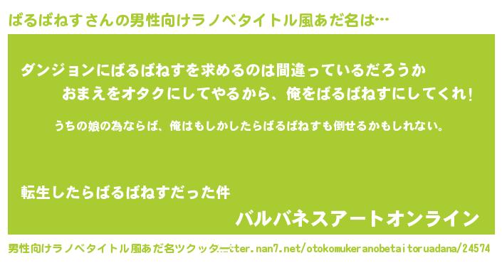 | 女子向けラノベタイトル風あだ名 | 『ばるばねすの婚約者』 |