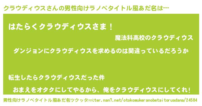 | 胡散臭い通販商品みたいなあだ名 | 『伝統あるサプリメント…その名も「クラウディウス」』 |