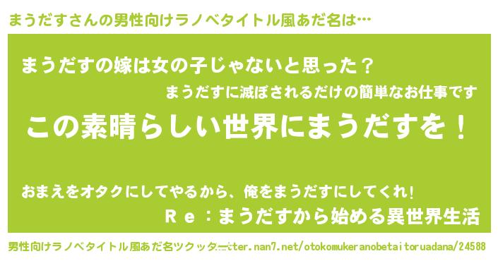 | 意味不明あだ名 | 『住所不定無職まうだす(71歳)』 |