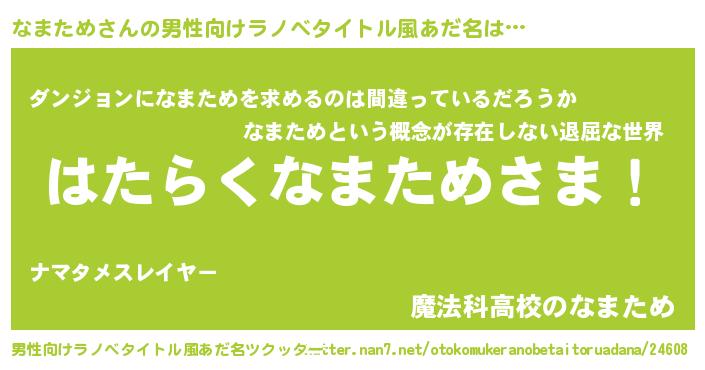 | ヘコむあだ名 | 『なまぷりん』『なまため(爆)』 |