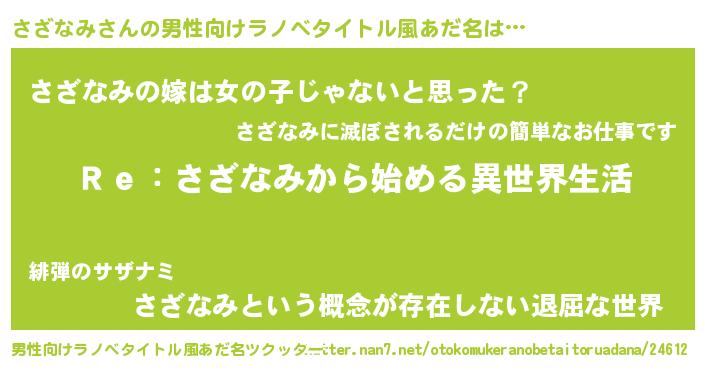| 女子向けラノベタイトル風あだ名 | 『さざなみストレイドッグス』 |