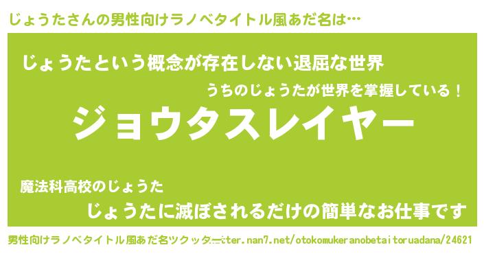 | ヘコむあだ名 | 『じょうた(笑)』『じょっぺ』 |