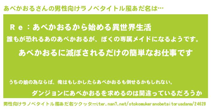 | 女子向けラノベタイトル風あだ名 | 『横柄あべかおると宰相陛下』 |