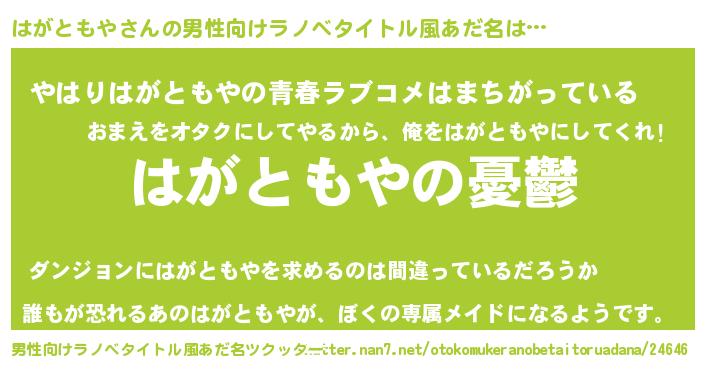 | 胡散臭い通販商品みたいなあだ名 | 『必ず成功する水晶球…その名も「はがともや」』 |