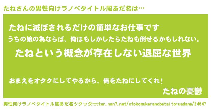 | 胡散臭い通販商品みたいなあだ名 | 『来世でも幸せになれる健康食品…その名も「たね」』 |