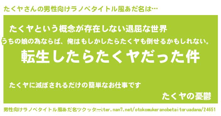 | 胡散臭い通販商品みたいなあだ名 | 『来世でも幸せになれる招き猫…その名も「たくヤ」』 |