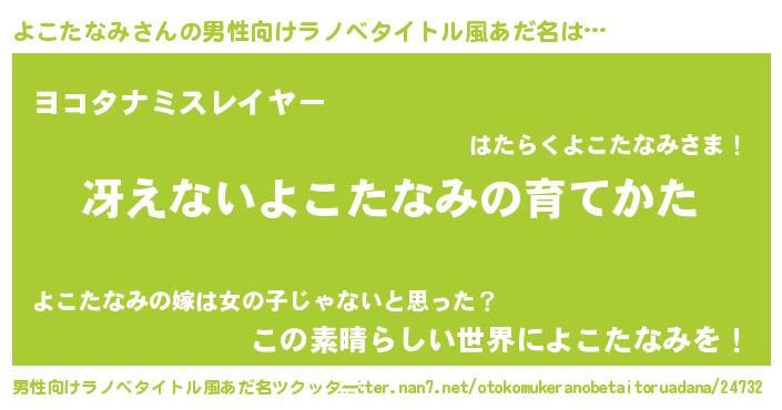 よこたなみさんの男性向けラノベタイトル風あだ名をツクッター!