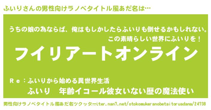 | 女子向けラノベタイトル風あだ名 | 『ふいり姫と円卓の騎士』 |