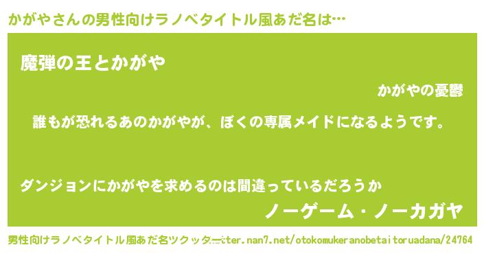 | ヘコむあだ名 | 『かがや(遠い目)』『かがにゅー』 |