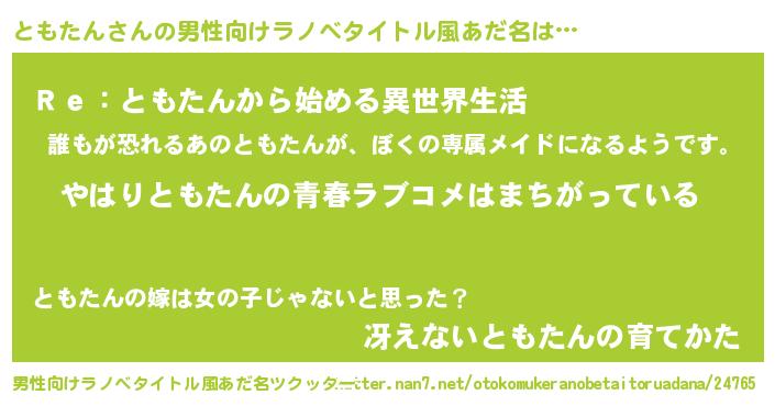 | 女子向けラノベタイトル風あだ名 | 『ともたんの雑貨屋さん』『闇のともたん』 |