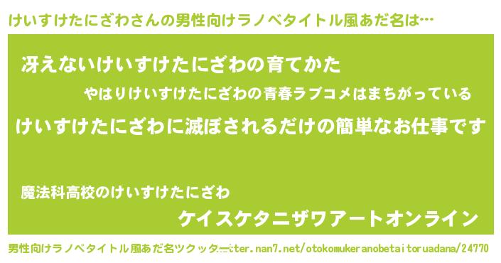 | 胡散臭い通販商品みたいなあだ名 | 『モテモテ間違いなし霊験あらたかなお札…その名も「けいすけたにざわ」』 |