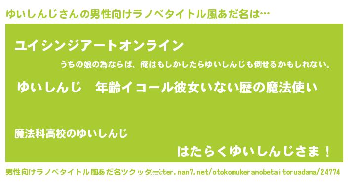 | 女子向けラノベタイトル風あだ名 | 『ゆいしんじの玉の輿計画!』 |