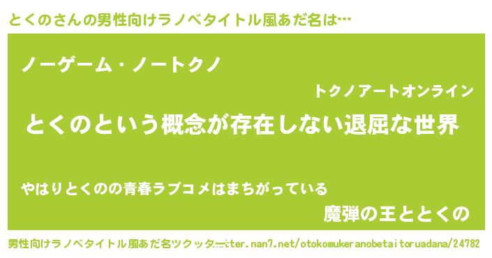 | ヘコむあだ名 | 『とくの(笑)』『とくもー』『豆乳』 |