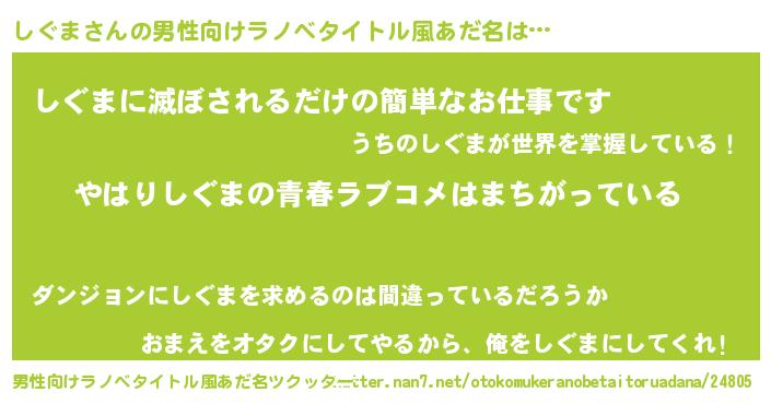 | 女子向けラノベタイトル風あだ名 | 『しぐまの雑貨屋さん』 |