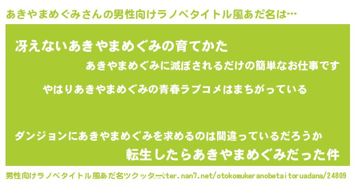 | 女子向けラノベタイトル風あだ名 | 『あきやまめぐみの雑貨屋さん』 |