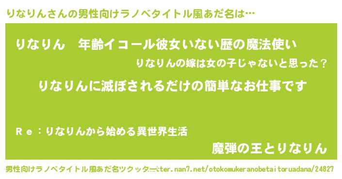 | 胡散臭い通販商品みたいなあだ名 | 『あなたにだけ特別に提供する限定10本のレアな日本酒…その名も「りなりん」』 |