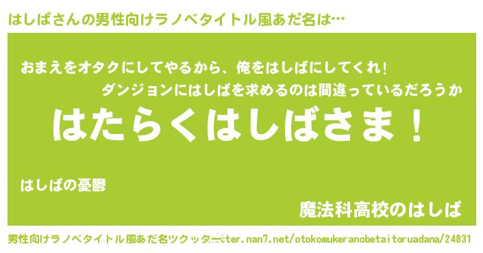 | ヒーロー風カッコイイあだ名 | 『愛の使者はしば』『究極戦士ハシバ』 |