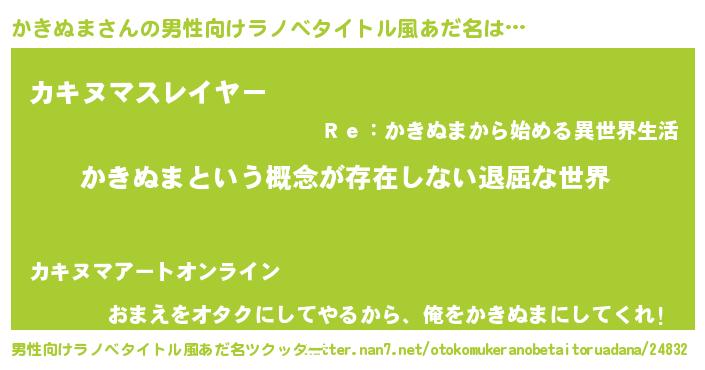 | 女子向けラノベタイトル風あだ名 | 『異世界で失敗しない100のかきぬま』 |