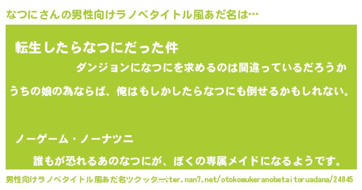 なつにさんの男性向けラノベタイトル風あだ名をツクッター!