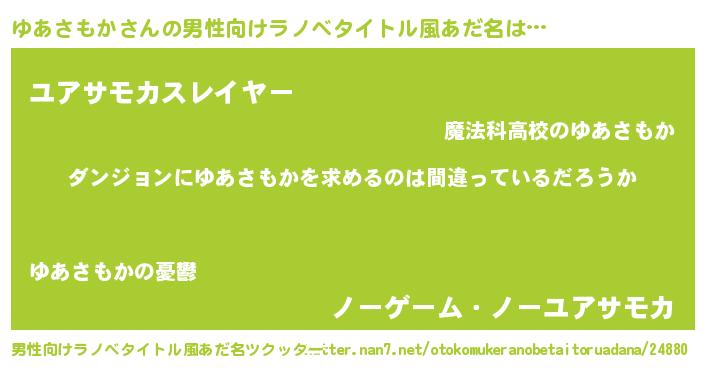| 胡散臭い通販商品みたいなあだ名 | 『伝統あるサプリメント…その名も「ゆあさもか」』 |