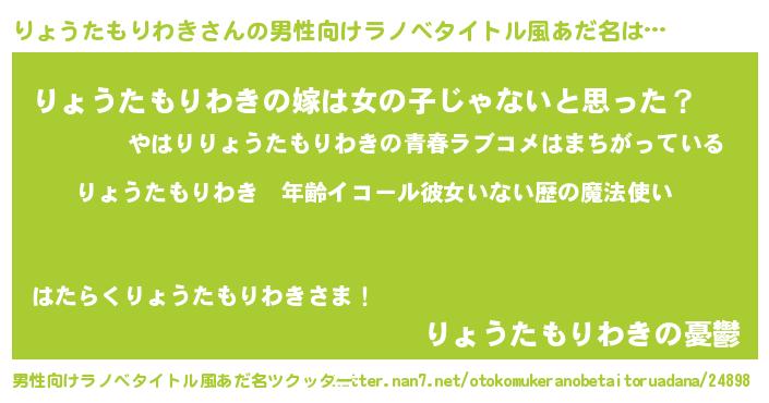 | 女子向けラノベタイトル風あだ名 | 『りょうたもりわきの玉の輿計画!』 |