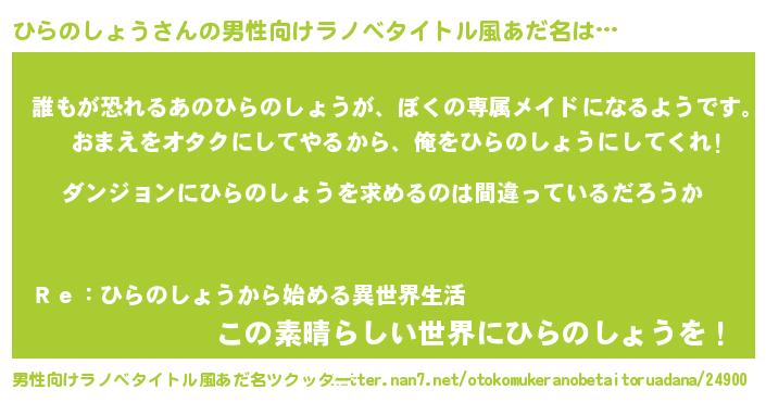 女子向けラノベタイトル風あだ名 | 『ひらのしょうは平凡を望む』 |