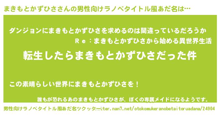 | 女子向けラノベタイトル風あだ名 | 『まきもとかずひさの玉の輿計画!』 |