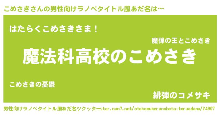 | 女子向けラノベタイトル風あだ名 | 『こめさきなんてお断りですっ。』 |