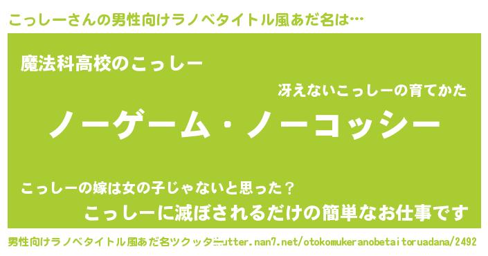 | 女子向けラノベタイトル風あだ名 | 『こっしー恋絵巻』『こっしー様がみてる』 |